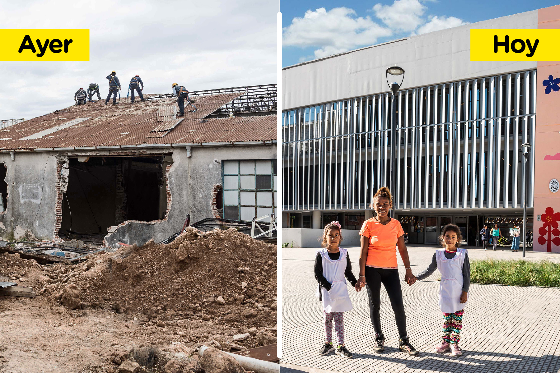 Con el Polo Educativo María Elena Walsh, la educación en todas sus aristas llega al Barrio Mugica. Es una construcción de 26.000 m² que cuenta con tres establecimientos educativos: una escuela inicial, una escuela primaria y un centro educativo para adultos. Además, se encuentra junto a la nueva sede del Ministerio de Educación de la Ciudad de Buenos Aires, que anteriormente funcionaba en la Av. Paseo Colón y desde enero 2020 se mudó al Barrio Mugica. Para definir el diseño del edificio, arquitectos de todo el país participaron de un Concurso Nacional de Anteproyectos que se llevó adelante entre agosto y octubre del 2016, junto a la Facultad de Arquitectura, Diseño y Urbanismo (FADU).
