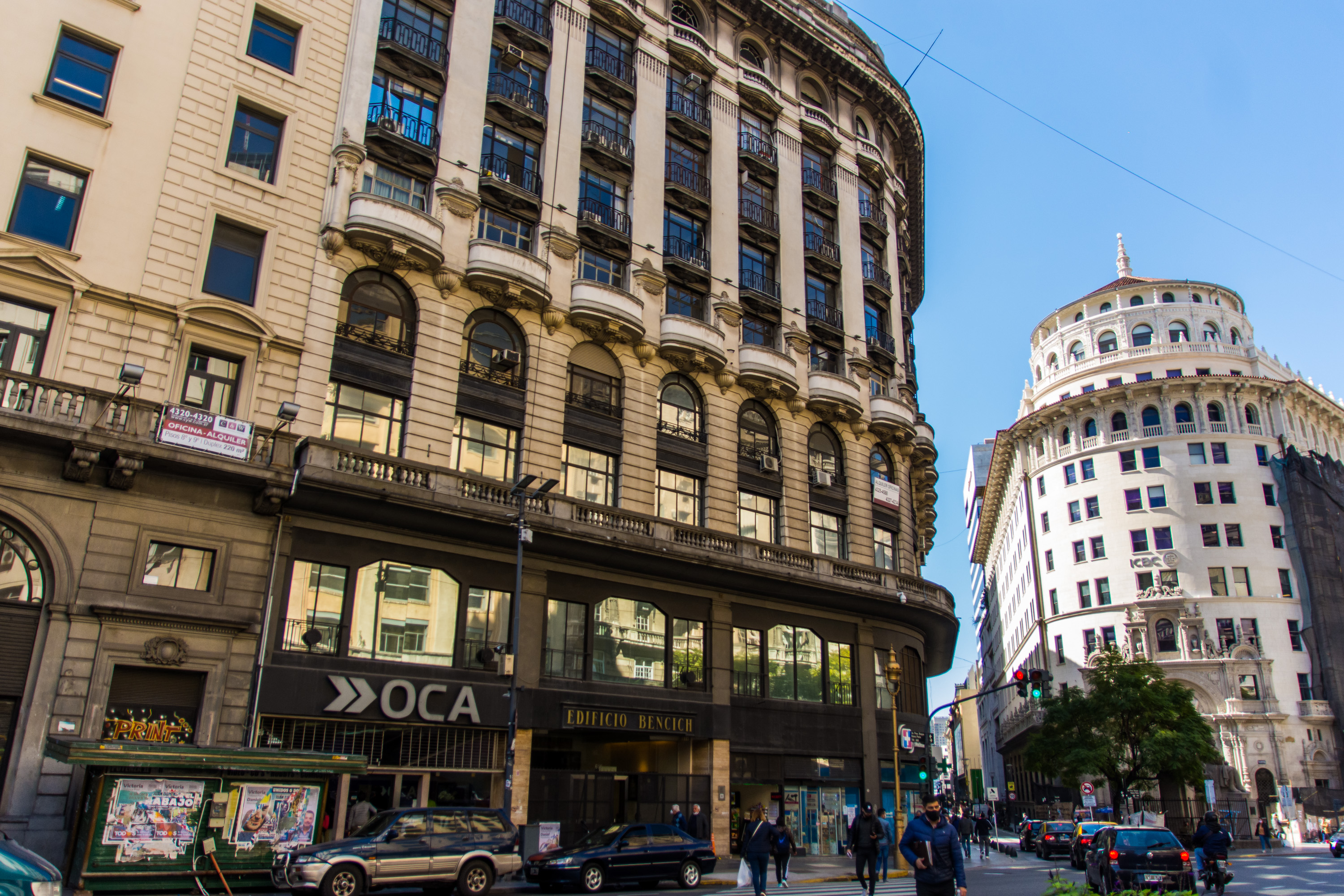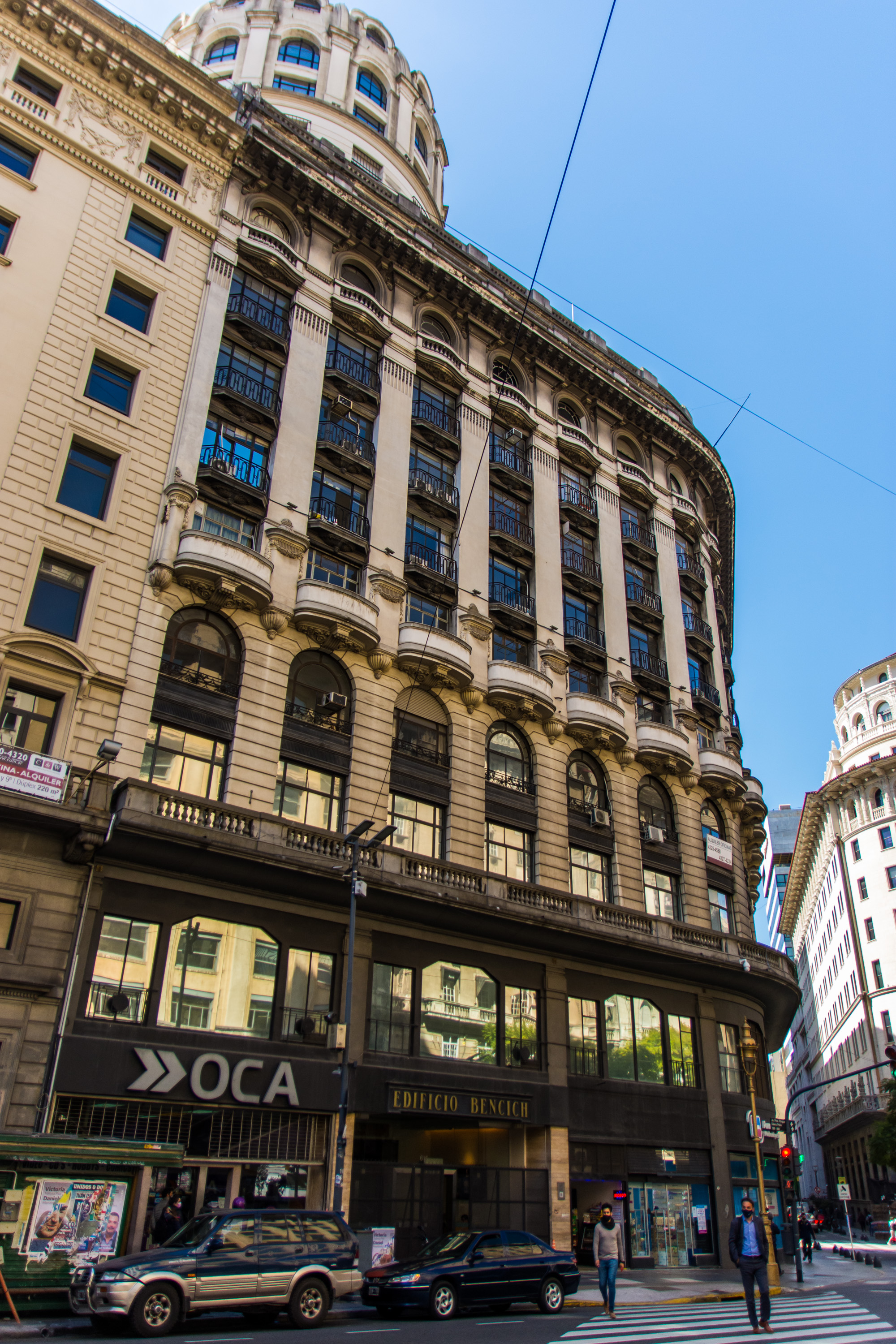 El edificio corona, junto al otro edificio Bencich que se encuentra cruzando la avenida, a la Equitativa del Plata y al ex Banco de Boston, la “esquina de las cinco cúpulas”, en la que se genera una particular situación urbana-arquitectónica.