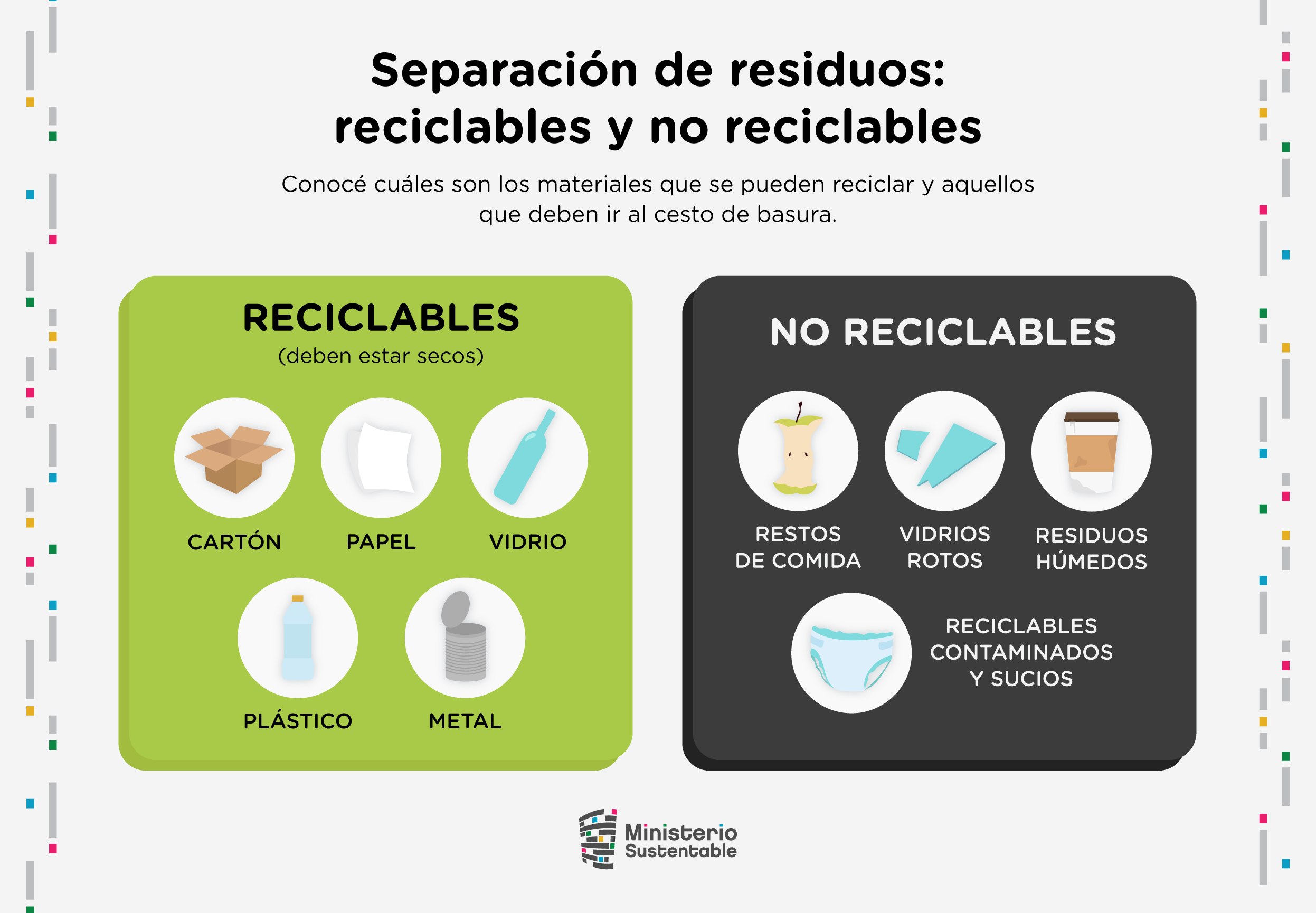 1) Separá los residuos en reciclables y no reciclables: