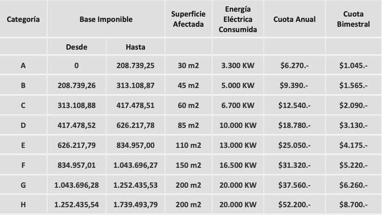 Además de los ingresos, se consideran la superficie afectada y la energía eléctrica consumida, para encuadrarse correctamente en la categoría correspondiente.