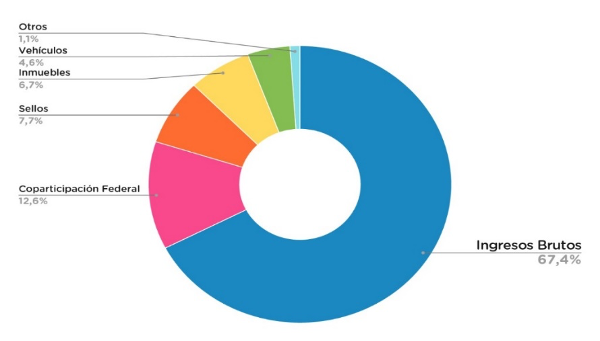 Para el 2022, los ingresos tributarios se calculan en $ 843.796 millones, con una estimación de ingresos tributarios propios de $ 737.658 millones (87,4% del total), en tanto que los recursos provenientes de la Coparticipación Federal se estiman en $ 106.138 millones (12,6% restante).