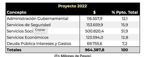 El total del gasto estimado para el año 2022 es de $ 964.388 millones, siendo el gasto primario de $ 895.111 millones, un 39,3 % más que para el cierre proyectado del corriente año.