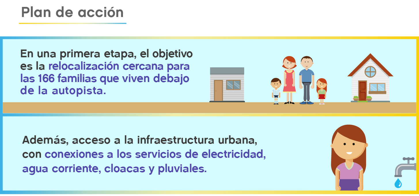 En una primera etapa, el objetivo es la relocalización cercana para las 166 familias que viven debajo de la autopista, según el Censo realizado por el IVC en el año 2012.