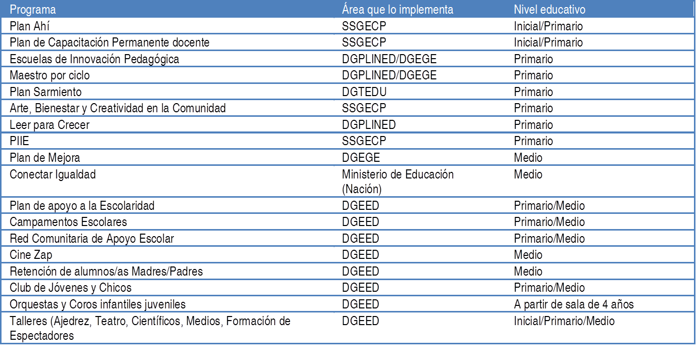 Programas implementados por el Ministerio de Educación CABA en Comuna 8 (Sector Estatal) (2014)