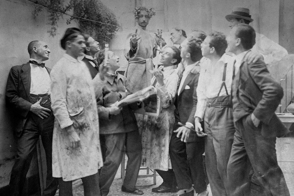 1926 QUINQUELA MARTÍN viaja a París, donde expone en la galería Charpentier. Integra la comisión fundadora de la Agrupación de Gente de Arte y de Letras “La Peña” en el café Tortoni y participa en la fundación del Ateneo Popular de La Boca.