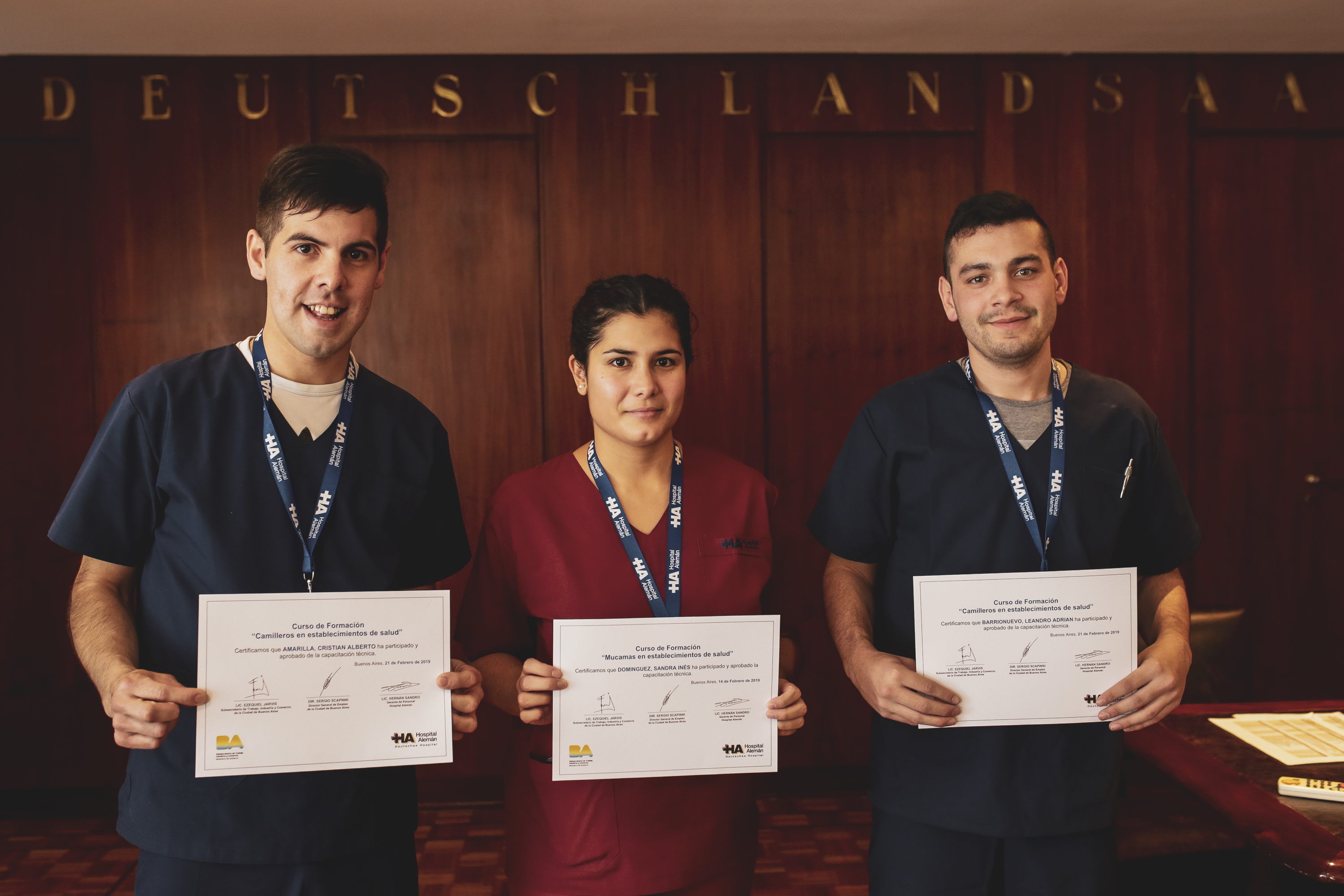 El viernes pasado, se llevó a cabo la entrega de diplomas a los 40 jóvenes egresados de la capacitación que se realizó en forma conjunta con el Hospital Alemán, para formar 20 camilleros y 20 mucamas.