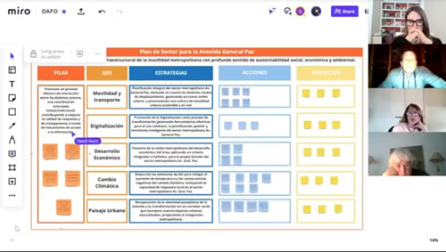 La Mesa de trabajo del plan de sector Avenida General Paz realizó su novena reunión, donde se delinearon las estrategias pendientes de la reunión anterior, para luego iniciar las acciones y proyectos. La tarea se desarrolló a través de la plataforma Miro.
