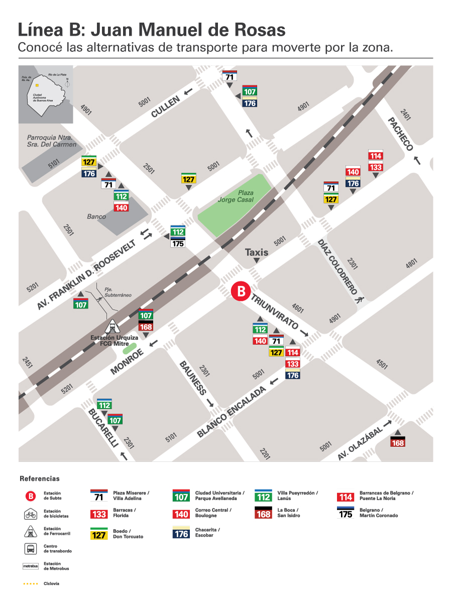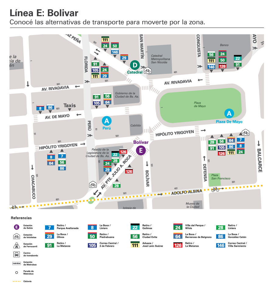 - Línea 8: La Boca/Liniers (Metrobus AU 25 de Mayo/Metrobus Del Bajo).