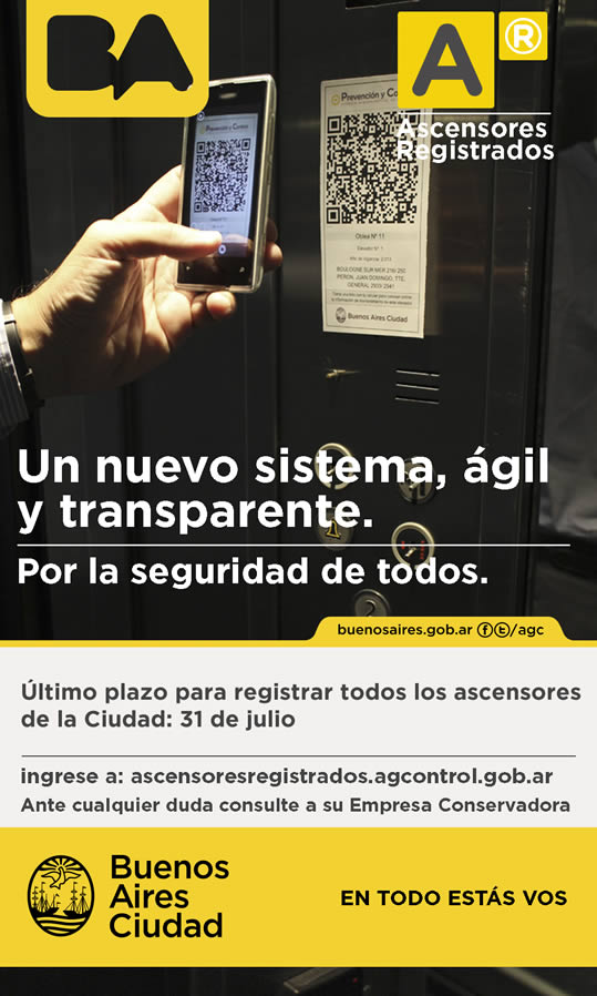 "Si bien la fecha de vencimiento inicial (30.04.2014) fué prorrogada hasta nuevo aviso, la idea es llegar a completar el 80% del padrón en el próximo trimestre. Esto permitirá optimizar el circuito inspectivo de todos los elevadores de la Ciudad."