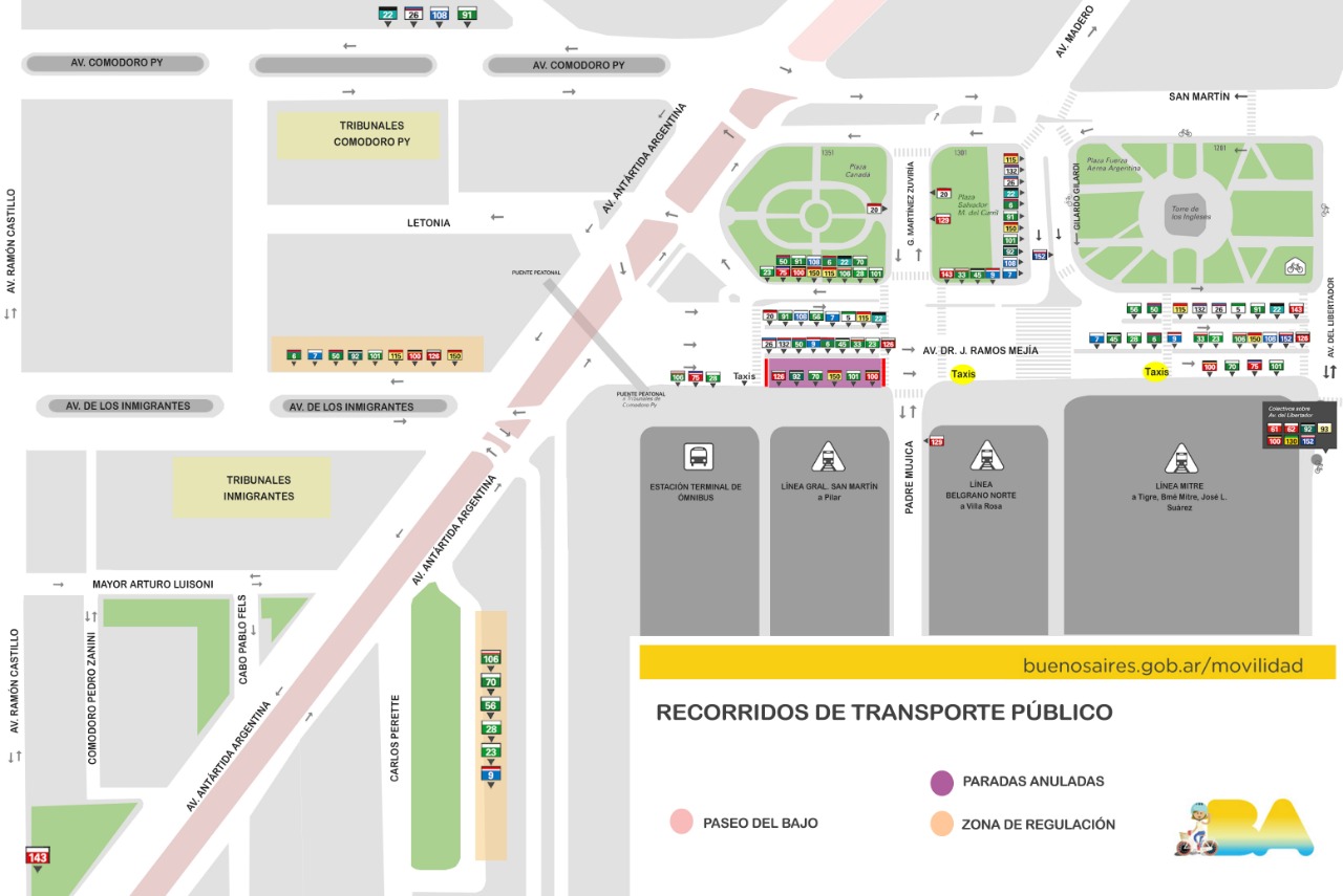 Las paradas se ubicarán en av. De Los Inmigrantes entre av. Antártida Argentina y Pablo Fels.