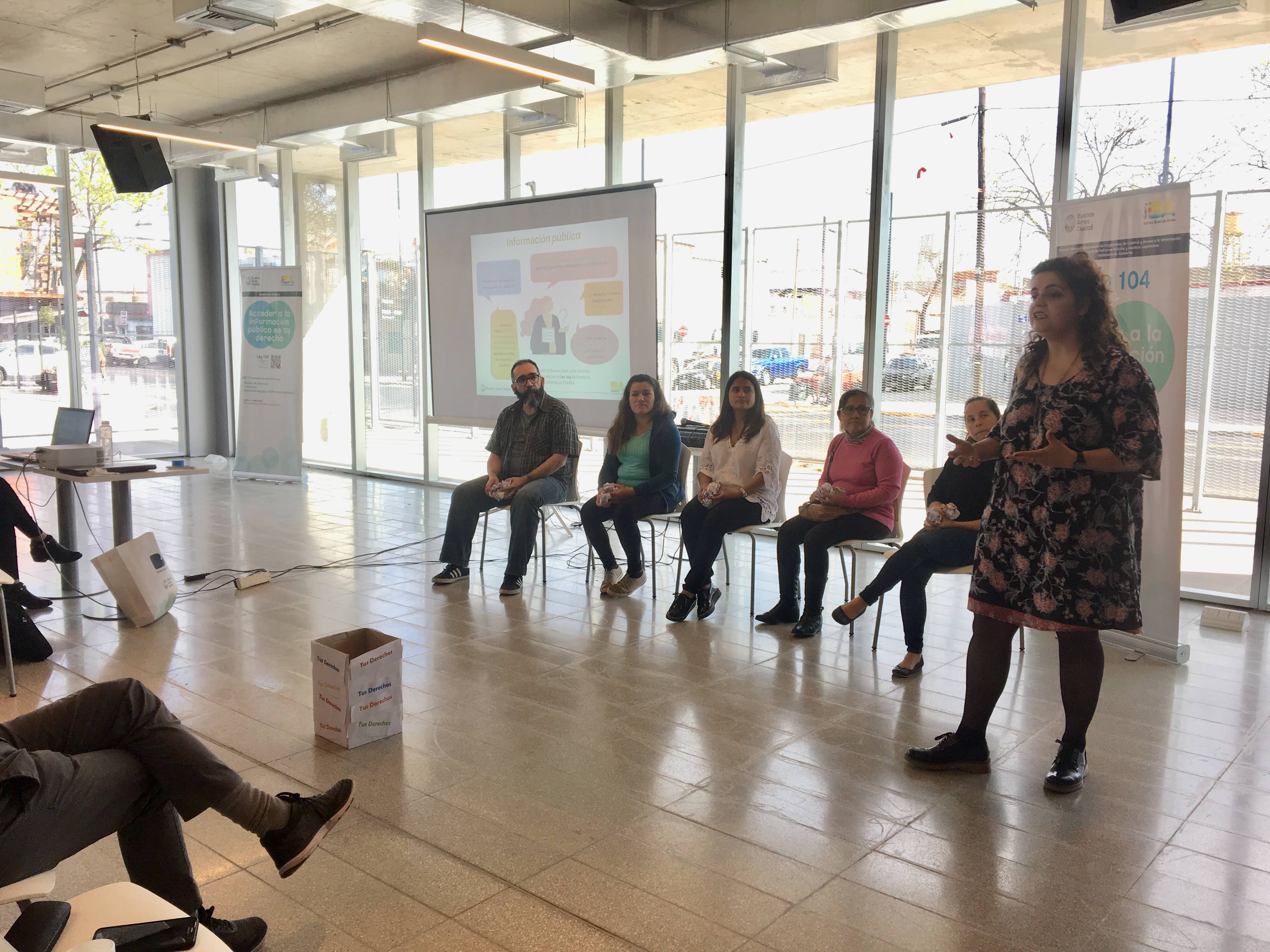 La grilla de actividades concluyó con una capacitación en acceso a la información en el icónico Elefante Blanco, nueva sede del Gobierno de la Ciudad, para 50 agentes del Ministerio de Hábitat y Desarrollo Humano. La apertura del encuentro estuvo a cargo de Sol Diaz Ortiz, Directora General de Seguimiento Organismos de Control y Acceso a la Información y contó con el apoyo del equipo de la Dirección General Técnica Administrativa y Legal del Ministerio de Hábitat y Desarrollo Humano. El encuentro de formación fue avalado con puntaje para la nueva carrera administrativa por el Instituto Superior de la Carrera
