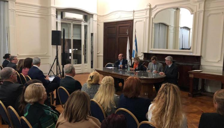 Participaron como disertantes: Pedro Furtado de Oliveira, director regional de la Organización Internacional del Trabajo; Gregorio Corach, juez de la Cámara Nacional de Apelaciones del Trabajo; Luis Alberto Cataldo, presidente de la Cámara Nacional de Apelaciones del Trabajo; Graciela Sosa, directora de Asuntos Internacionales del Ministerio de Producción y Trabajo de la Nación; Marcelo Peretta, secretario general del Sindicato de Farmacéuticos y Bioquímicos; Andrés Prieto Fasano, titular del Estudio Jurídico Prieto Fasano y Asoc. y Guillermo Marcó, director del Instituto de Diálogo Interreligioso.
