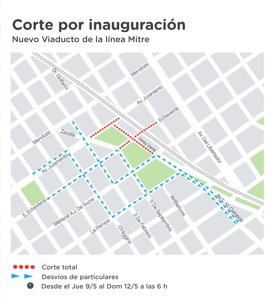En el marco de la inauguración del Viaducto Mitre, desde el jueves 9 de mayo se realizan los siguientes cortes de tránsito en la Ciudad.