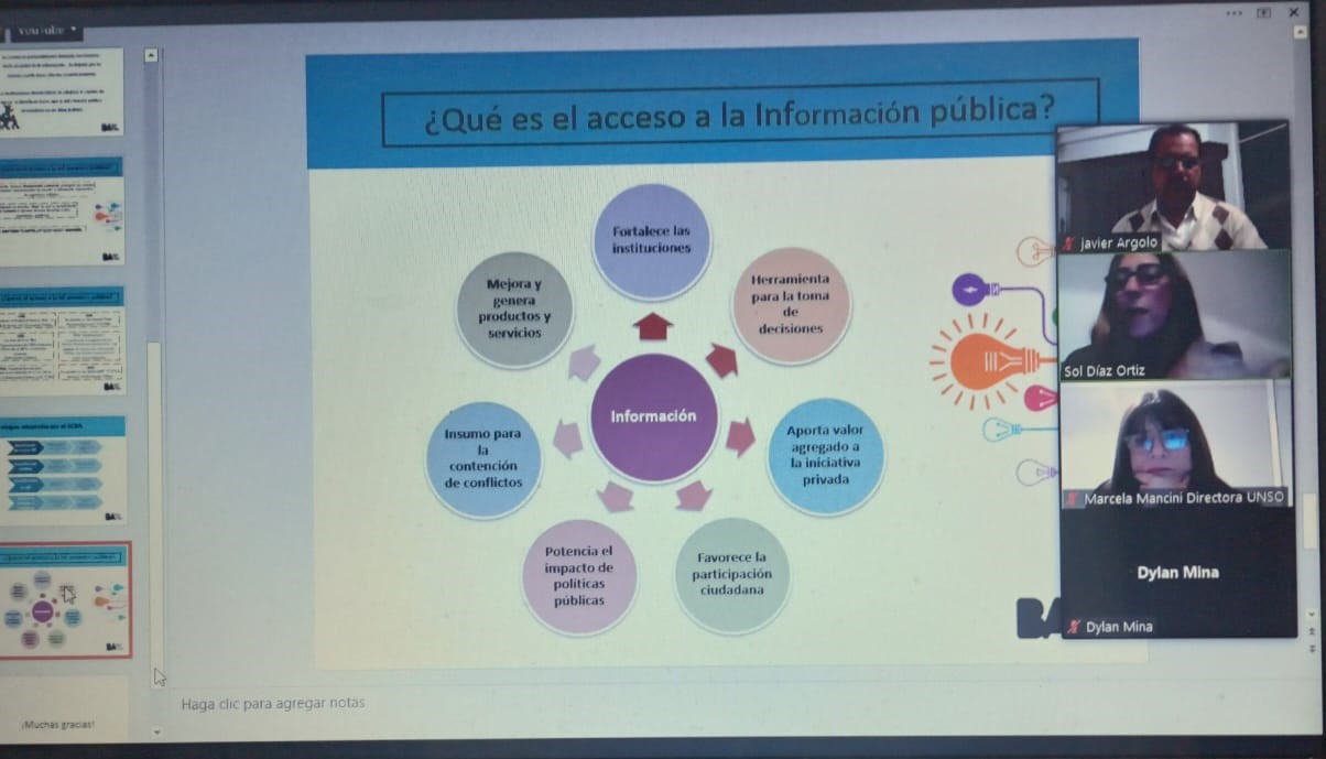 Con el objeto de acercar experiencias y reflexionar entorno al acceso a la información pública como un derecho humano fundamental, el departamento de Humanidades y Ciencias Sociales de la carrera de Gestión Pública de la UNSO realizó un conversatorio virtual sobre acceso a la información pública en el marco del Día Internacional del Acceso a la Información Pública.