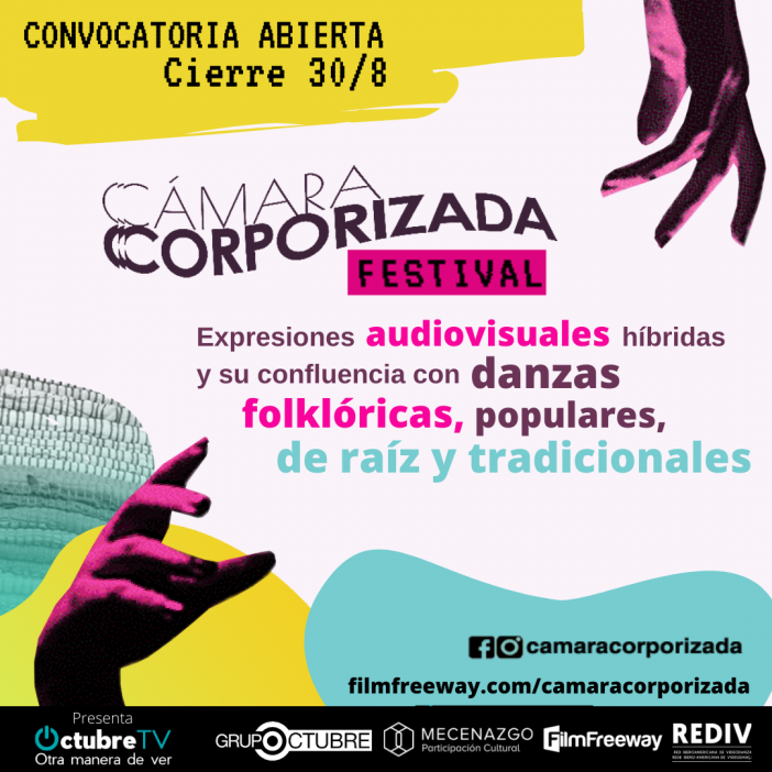Con el apoyo del programa Mecenazgo Cultural del Gobierno de la Ciudad de Buenos Aires, el Festival Internacional Cámara Corporizada realiza una convocatoria nacional e internacional para expresiones audiovisuales híbridas sobre danzas folklóricas, populares y de raíz, que presenten un enfoque contemporáneo. La recepción de obras es hasta el 30 de agosto, y podrán ser enviadas exclusivamente a través de la plataforma FilmFreeway. La inscripción es gratuita.