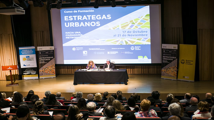 Con más de trescientos participantes, se llevó a cabo en el auditorio de la Sede de Gobierno la apertura del primer módulo del Curso de Formación: “Estrategas Urbanos. Hacia una Ciudadanía Metropolitana”. Las palabras de bienvenida a los alumnos estuvieron a cargo de la Dra. Marta Comoglio, Coordinadora de Proyectos del Programa de Estrategias Metropolitanas de la Subsecretaría de Asuntos Jurisdiccionales y de Política Metropolitana del Ministerio de Gobierno de la Ciudad Autónoma de Buenos Aires, y el Dr. Jorge Giorno, Subsecretario de la Unidad de Coordinación del Consejo de Planeamiento Estratégico (UCPE).