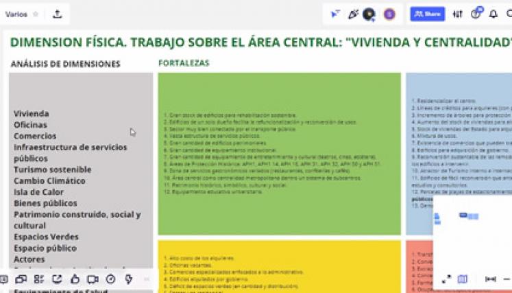 Las organizaciones de la sociedad civil que componen la Dimensión Física participaron de la octava reunión virtual del año. En primer término se trabajó sobre el Área Central, a través de la plataforma Miro, en base a las dimensiones seleccionadas y al FODA producido en reuniones anteriores para proyectar el escenario tendencial y el escenario deseado. Se incorporaron fortalezas y debilidades y plantearon propuestas para los escenarios.