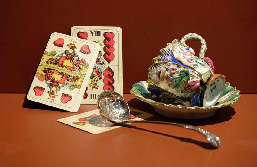 En las obras de Maggi, la casa abigarrada, caótica y protagonista está habitada por un elenco de personajes que navegan entre muñecas de papel y cortesanas. Es un gran cuarto de juegos invadido por seres inverosímiles, como si un espíritu travieso los hubiera reunido y animado para merendar en tazas vacías y sostener charlas improvisadas, como murmullos apenas perceptibles.