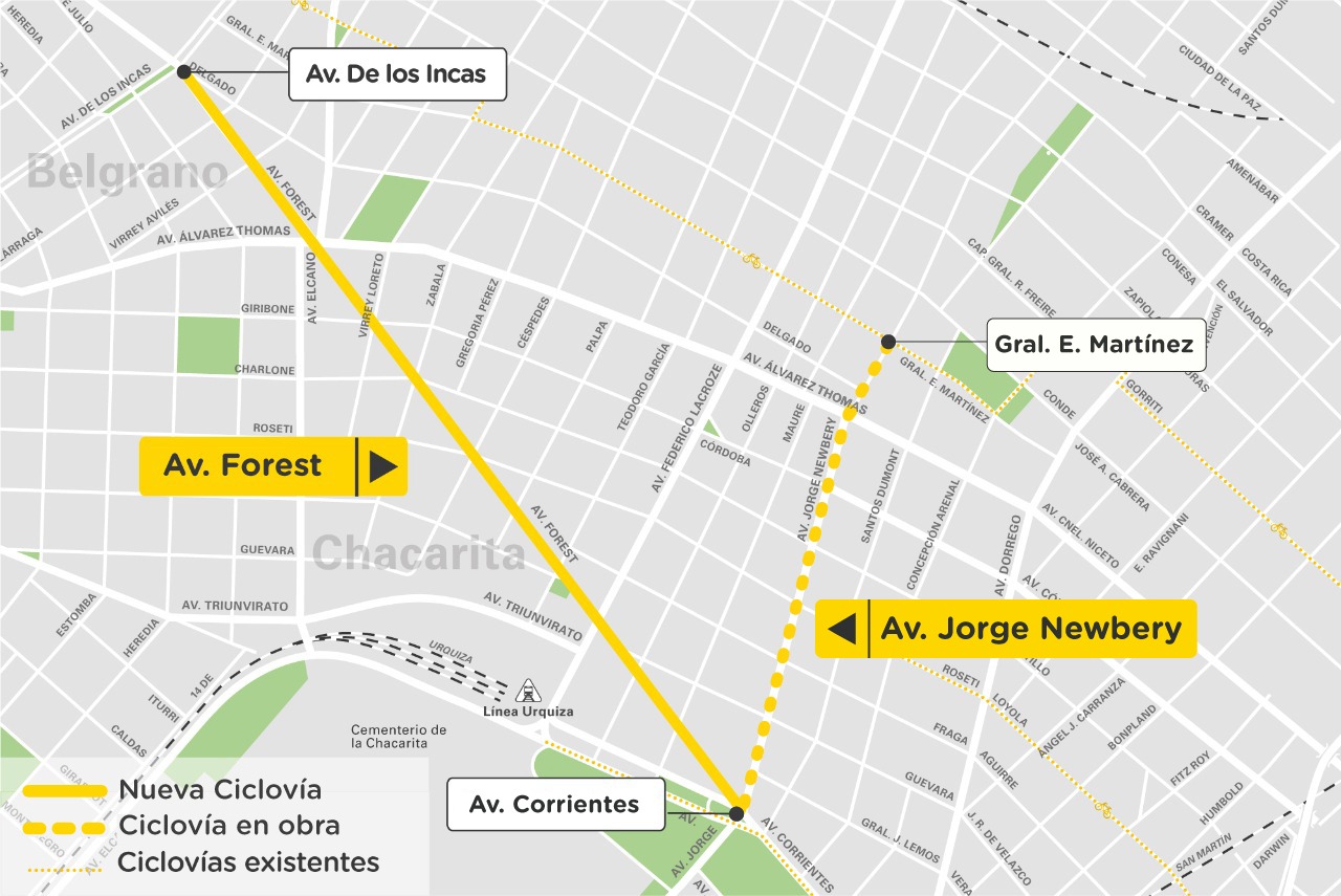 "Las ciclovías en avenidas llegaron para quedarse. Forest y Newbery son nuevas alternativas que se suman a las trazas inauguradas en Córdoba y Corrientes para que los ciclistas de los barrios de Chacarita, Colegiales y Belgrano conecten en forma directa con el centro de la Ciudad y se muevan en forma segura por la red de ciclovías y bicisendas protegidas." Juan José Mendez, secretario de Transporte y Obras Públicas de la Ciudad de Buenos Aires.