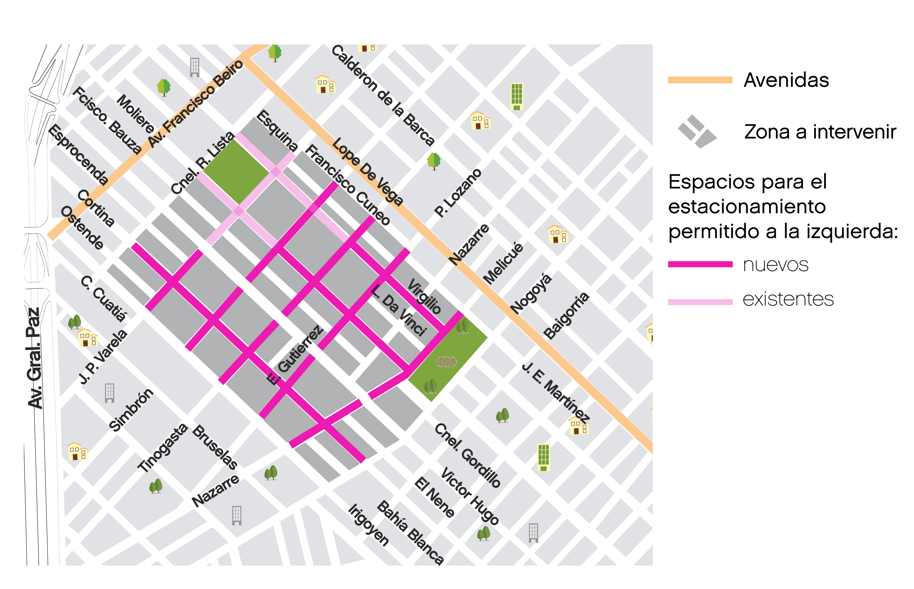 La obra busca una mejora integral en el barrio y consistirá en la incorporación de recursos como: señalética y sendas peatonales elevadas en accesos al área, ciclovías protegidas, chicanas y nuevos espacios verdes. Zona 30 tiene como finalidad devolverle la calle a los vecinos del barrio generando un entorno más seguro y amigable para las 14 mil personas que viven y se mueven todos los días por el perímetro comprendido por las calles Ramón Lista, Nogoyá, Juan E. Martínez e Irigoyen.