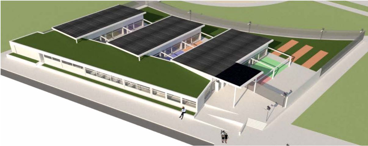 La escuela, construida en una sola planta, contará con ocho aulas: dos para niños de tres años, dos para niños de cuatro años, dos para niños de cinco años, una destinada a música y otra a informática (mediateca).
