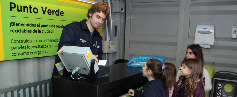 El Punto Verde es un container especialmente diseñado bajo conceptos de sustentabilidad al que los vecinos pueden acercarse a dejar sus residuos. Cuenta con cuatro paneles solares en su techo que generan el 100% de su consumo energético y tiene una terraza verde cubierta con vegetación y plantas de la Ciudad con el objetivo de mitigar los efectos del cambio climático.