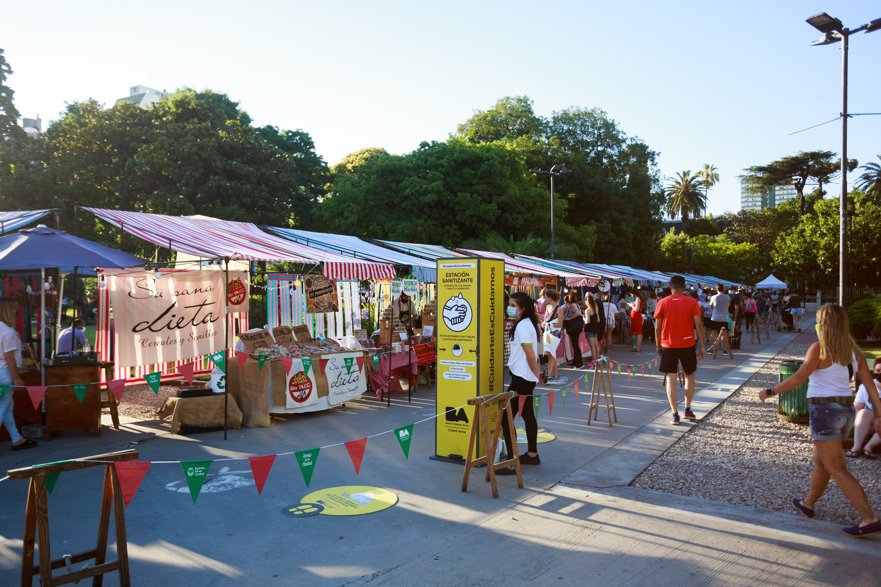 ● Apertura del Mercado únicamente: no habrá espacios gastronómicos ni foodtrucks ni alimentos preparados para consumir dentro de la feria. No habrá mesas comunitarias ni sillas para los visitantes.