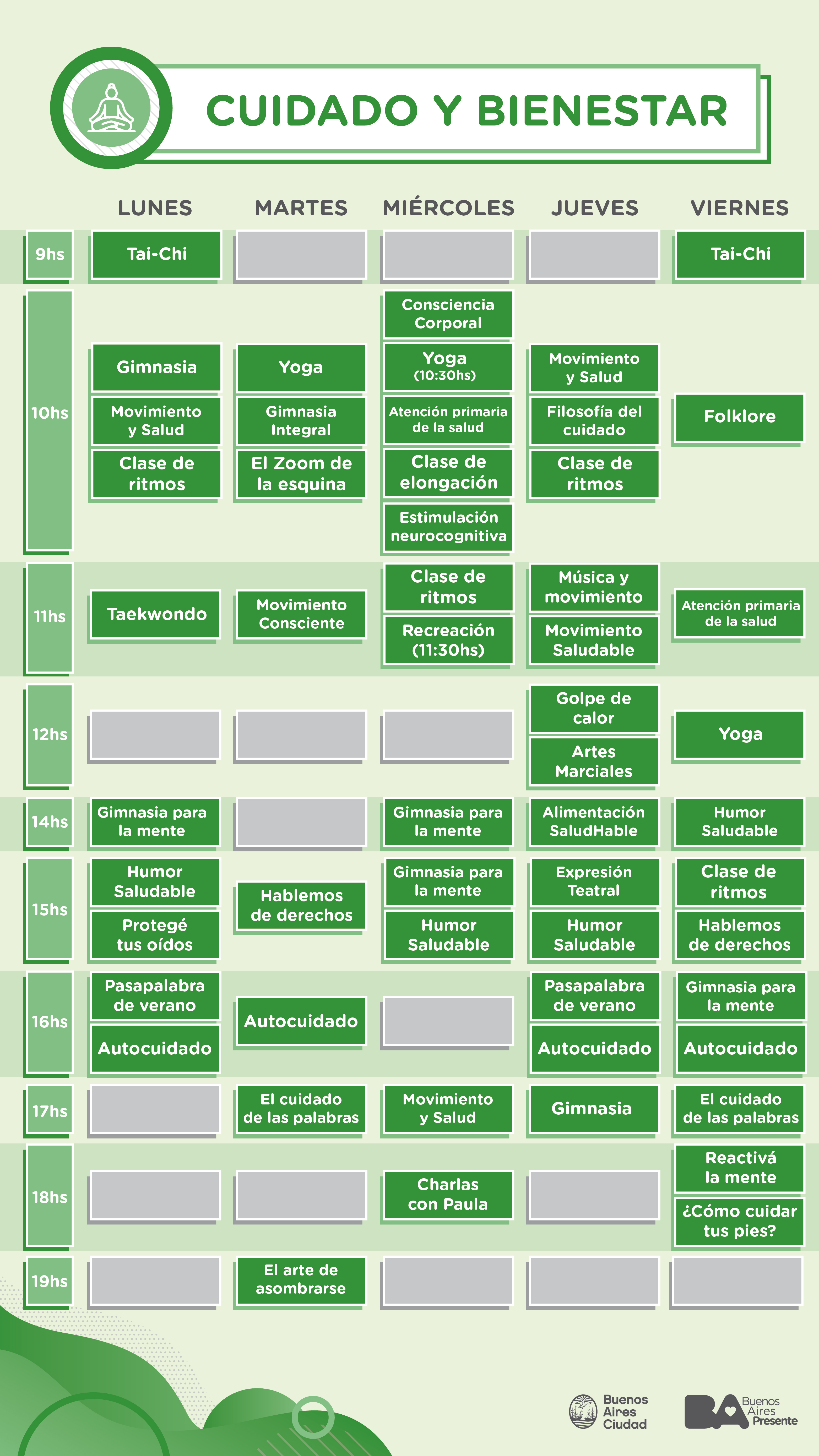 Esta iniciativa, dirigida a personas mayores residentes de la Ciudad de Buenos Aires, apunta a promover un envejecimiento activo y saludable en este contexto de distanciamiento social. Incluye clases de: gimnasia, yoga, ritmos, elongación, autocuidado, música, protección de derechos y turismo, entre otras actividades.