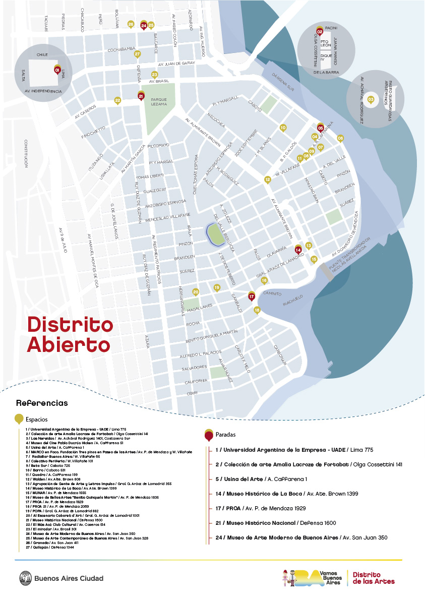 La Ciudad invita a los vecinos el sábado 21 de abril de 15 a 19 horas a participar de una nueva edición de Distrito Abierto, para recorrer 27 galerías, museos y centros culturales de San Telmo y La Boca, que abrirán sus puertas al público con entrada libre y gratuita.