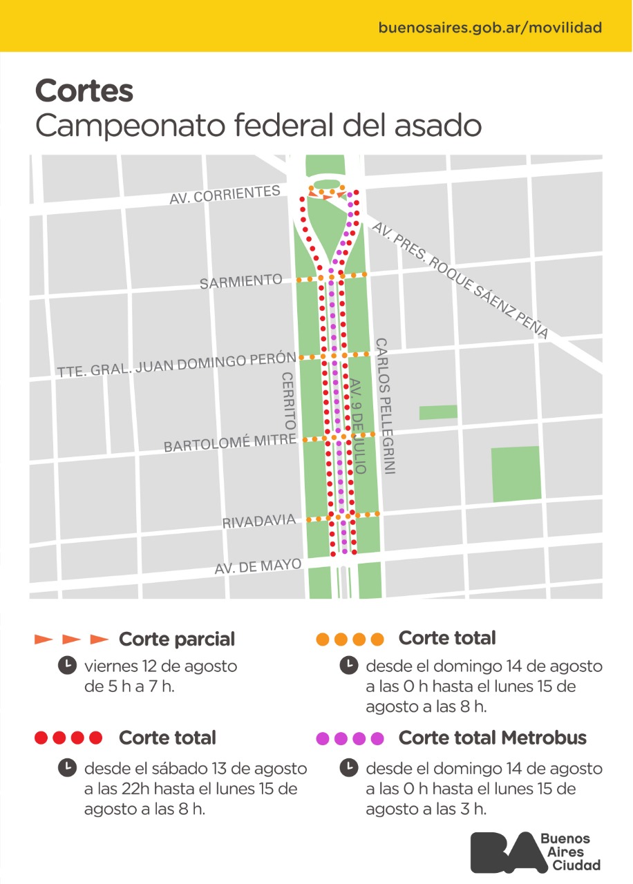 Este domingo 14 de agosto en av. 9 de Julio entre av. Corrientes y av. De Mayo se realiza la 4ta edición del Campeonato Federal del Asado, un evento que homenajea este ritual argentino con propuestas culturales.