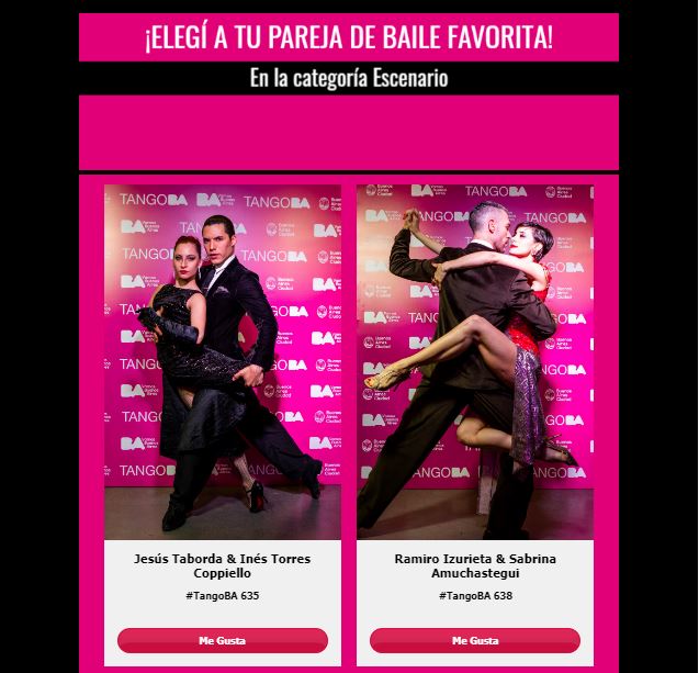 3) Recorrer la galería con las duplas finalistas de la categoría Tango Escenario y elegir a la pareja favorita.