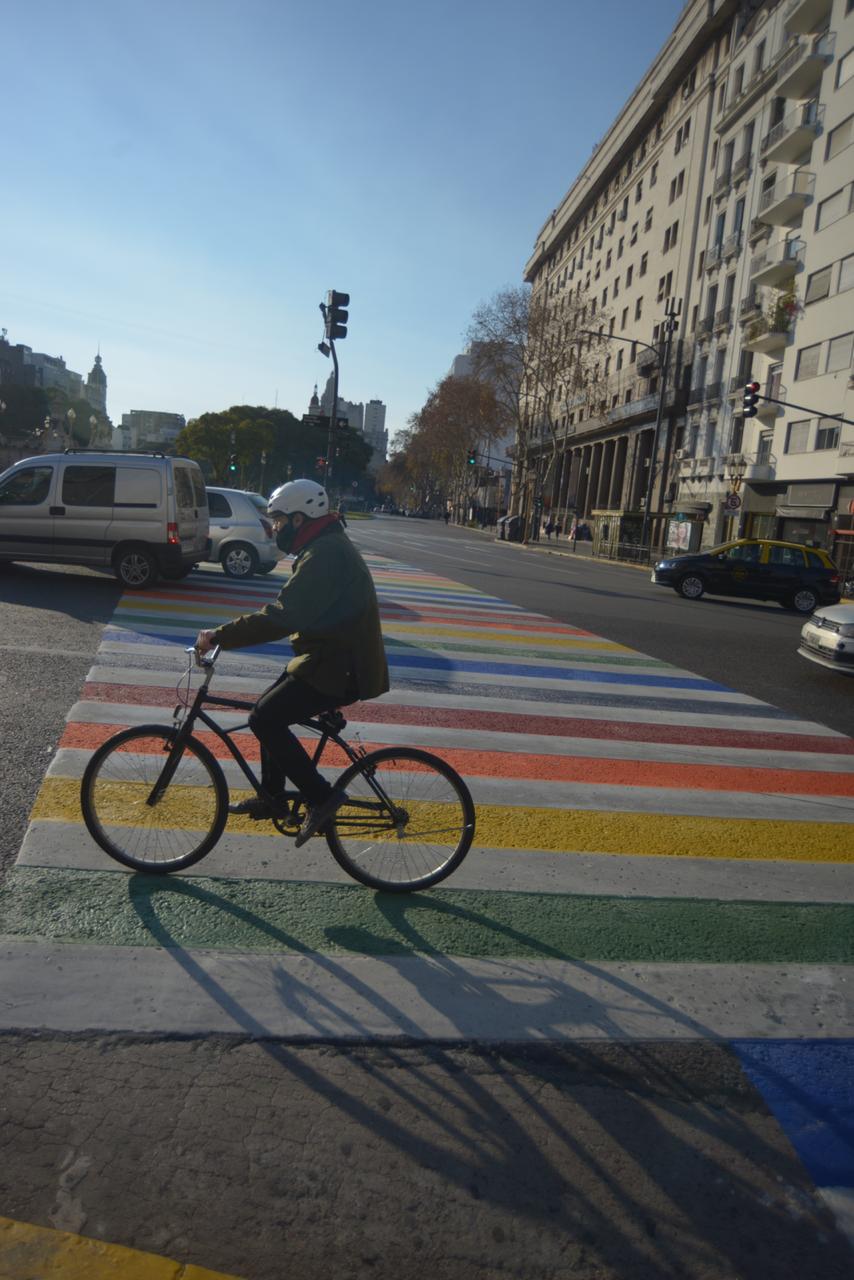 La Ley de Matrimonio Igualitario en el país (Ley 26.618) fue aprobada el 15 de julio de 2010. A diez años de su promulgación, la Secretaría de Transporte y Obras Públicas de la Ciudad de Buenos Aires intervino con los colores de la bandera LGBTIQ+ las sendas peatonales próximas al Congreso Nacional.