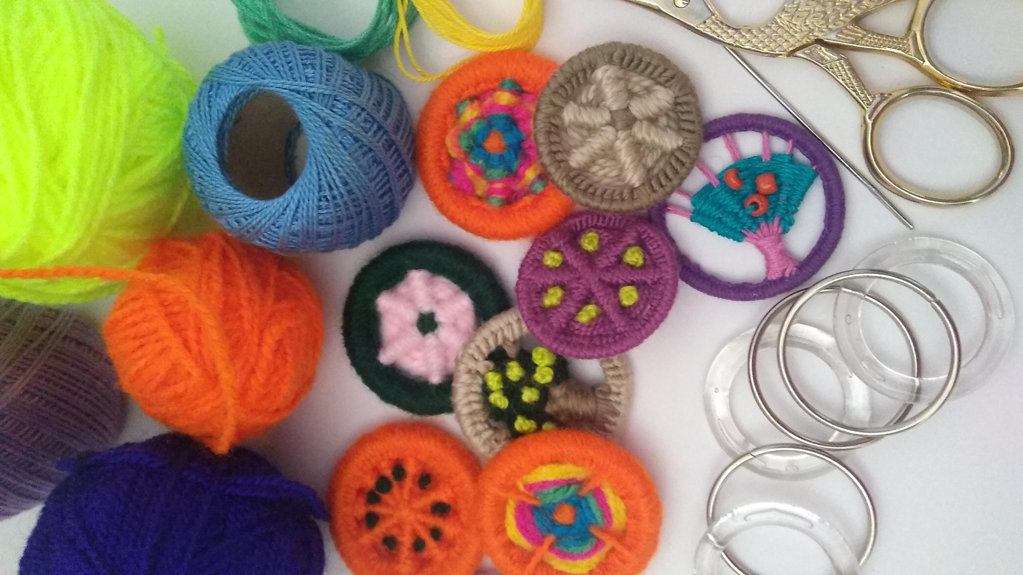 - Hilos de bordar o Macramé o lanas acrílicas finas de varios colores