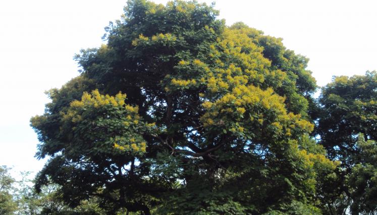 Varios ejemplares en plena floración elevan sus copas amarillas en enero en el Jardín Botánico.