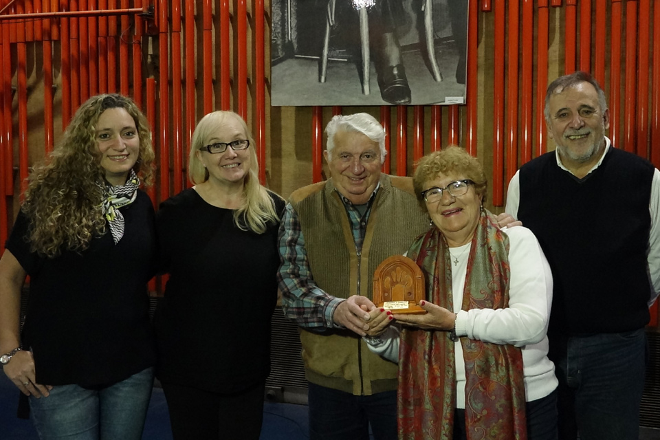 Los matrimonios compuestos por Jorge y Lidia y Carlos y Susana, quienes celebran sus "Bodas de Oro", recibieron una réplica de la radio.