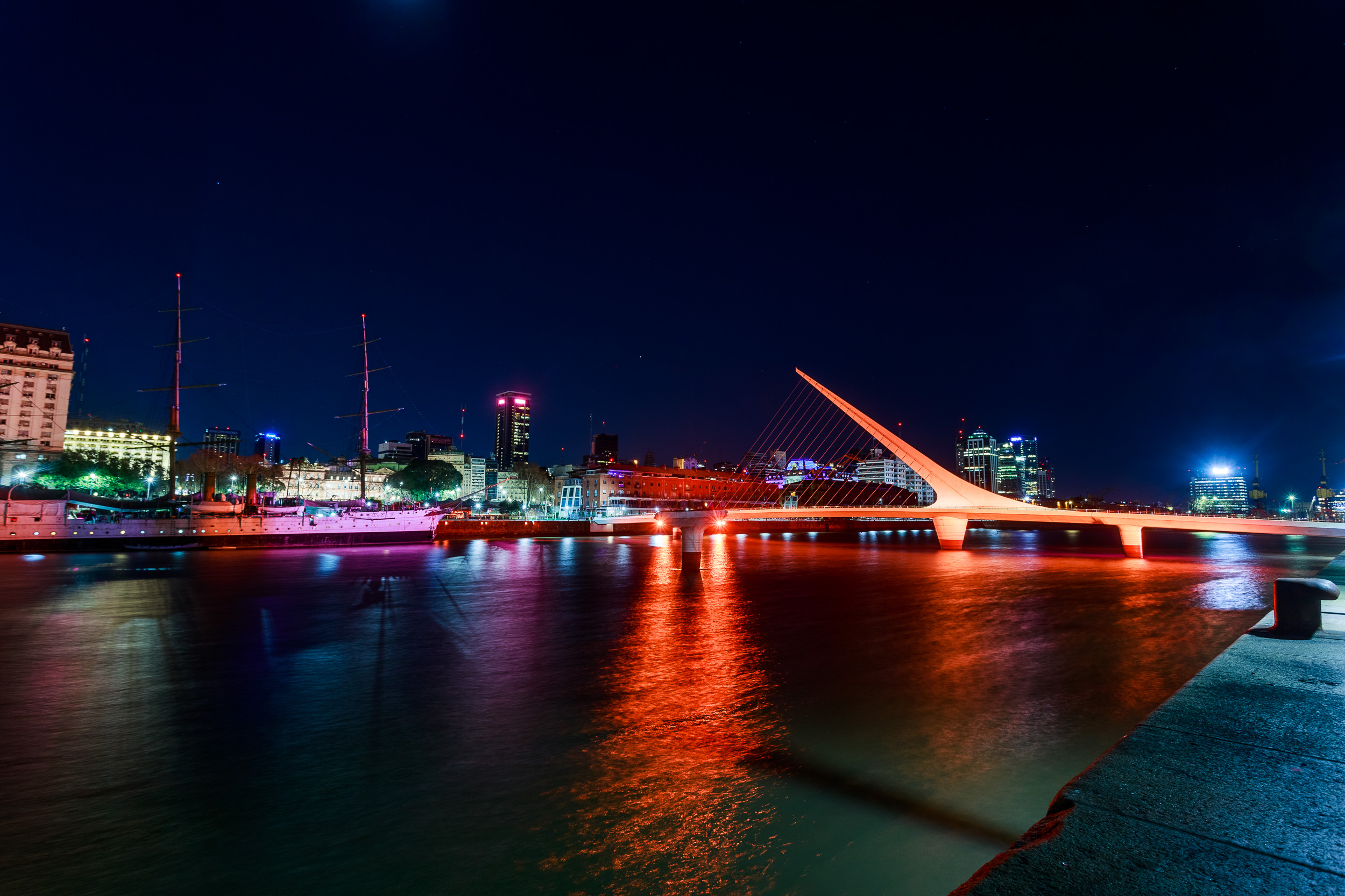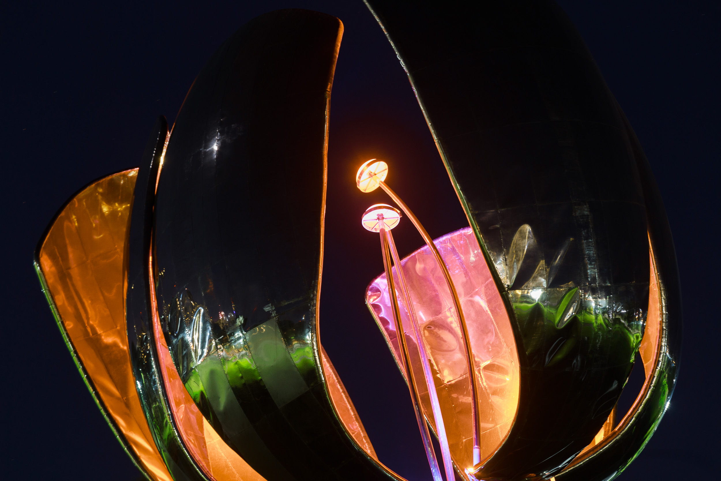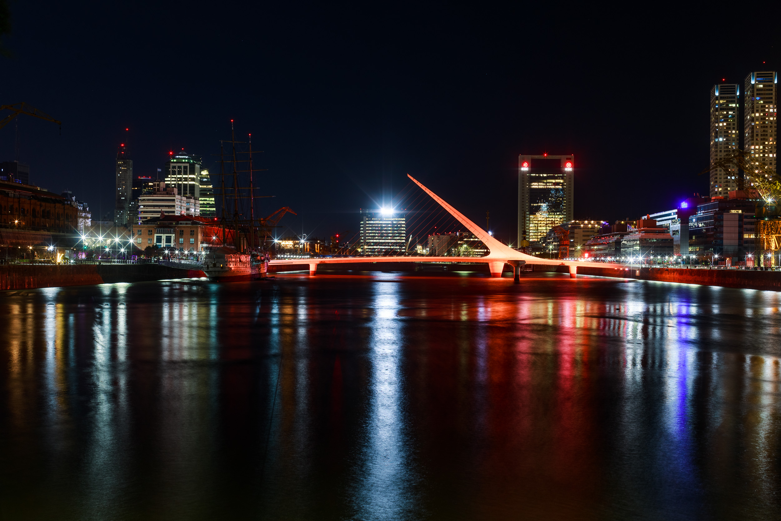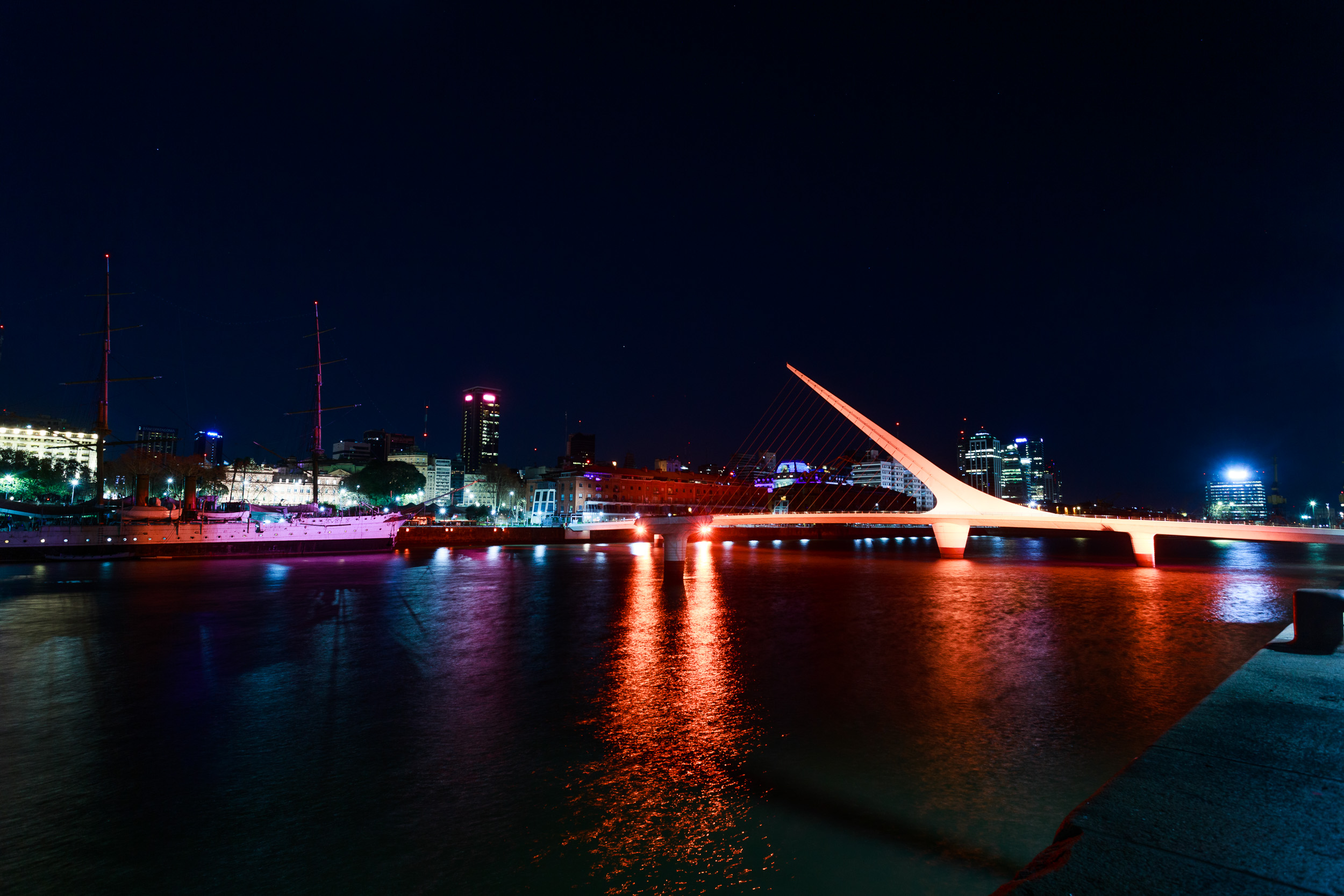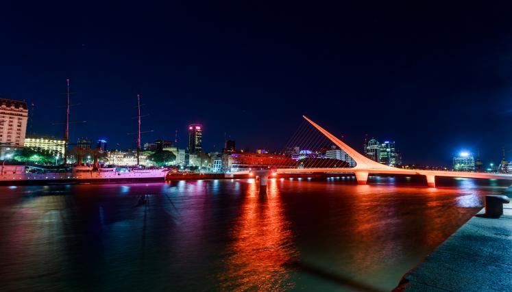 Los monumentos que lucen el color naranja son el Planetario, la Floralis Genérica, y el Puente de la Mujer.