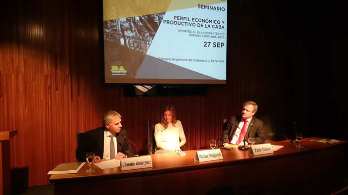 Se llevó a cabo, en el auditorio de la Cámara Argentina de Comercio y Servicios, el Seminario “Perfil Económico y Productivo de la Ciudad Autónoma de Buenos Aires. Aportes al Plan Estratégico 2016-2030"; organizado en forma conjunta por la Unidad de Coordinación del Consejo de Planeamiento Estratégico, la Dimensión Económica del CoPE y la Cámara Argentina de Comercio y Servicios. El seminario contó con la apertura del Dr. Jorge Alberto Giorno, Subsecretario de la Unidad de Coordinación de Planeamiento Estratégico del Gobierno de la Ciudad de Buenos Aires; y el Vicepresidente 1° del CoPE, Sr. José Víctor Clavería.