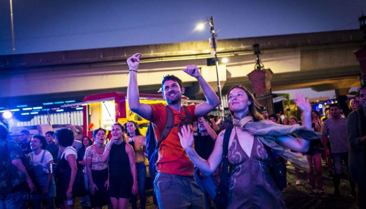 Un dato para quienes se acerquen a disfrutar la cumbia del domingo: a las 20:45 también se proyectará la película Gilda, no me arrepiento de este amor, como cierre de los domingos de cine.