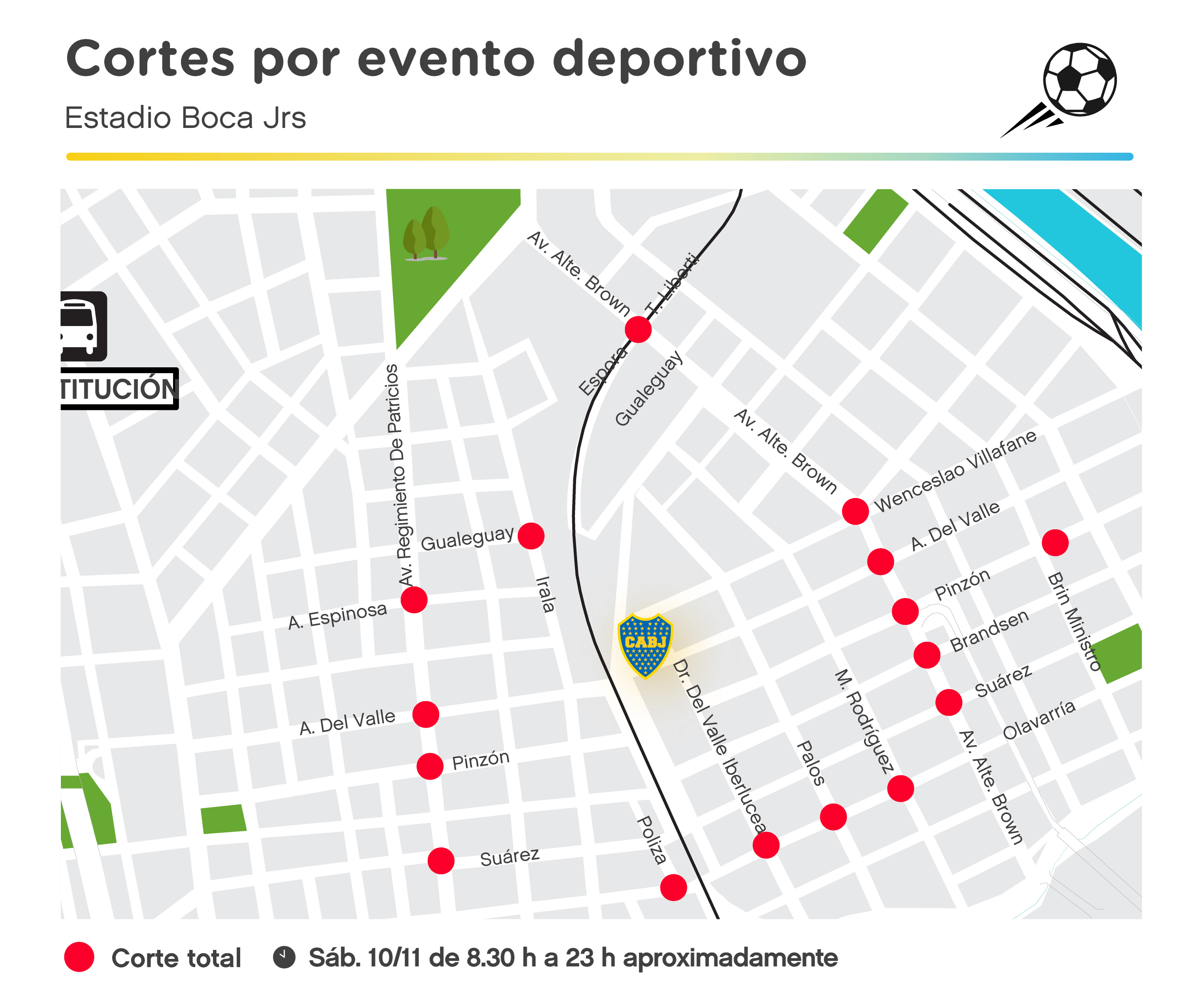 - Corte total en la intersección de Suárez y av. Almirante Brown.