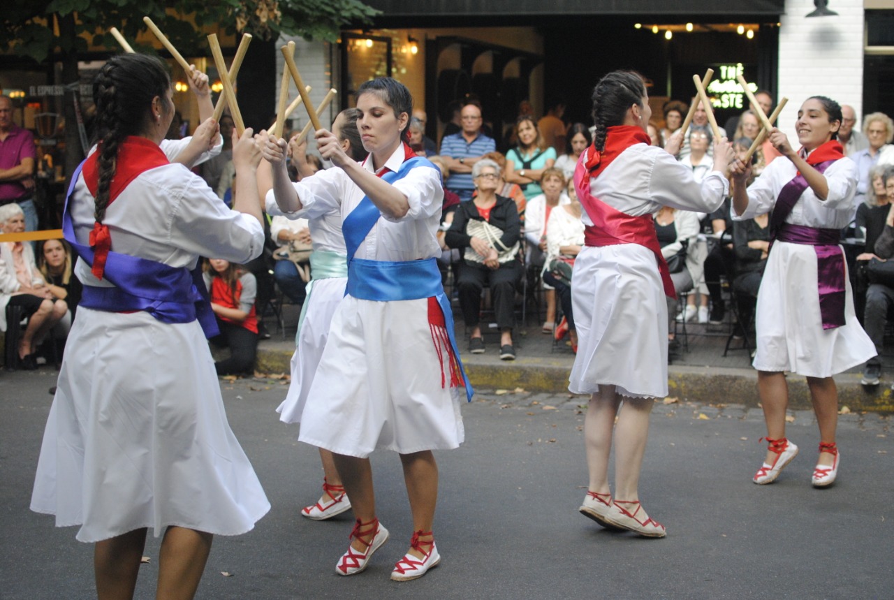 Luego fue el momento en el que las colectividades inundaron la calle impregnando color, música y alegría: Primero Galicia y luego Calabria, invitaron a bailar a todos con sus tradicionales danzas, incluida una lección rápida de tarantela. Rocío Carbia, artista plástica e integrante de la Asociación Gallega, también participó del aniversario exponiendo sus obras y recitando un poema gallego.