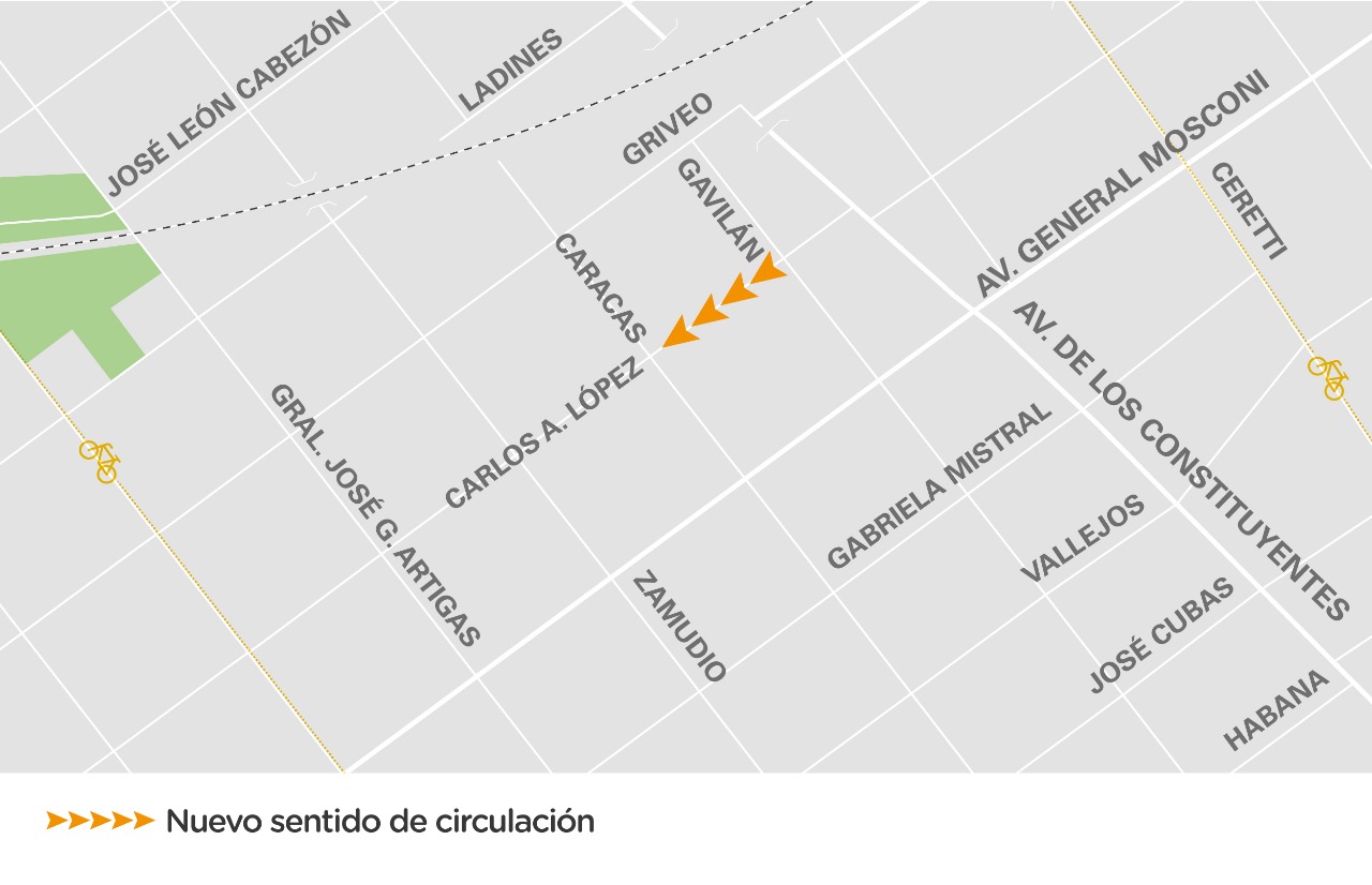 El Gobierno porteño informa el cambio de sentido de un tramo de la calle Carlos Antonio López, en el barrio de Villa Pueyrredón. Se trata de apenas 100 metros entre las calles Caracas y Gavilán en donde, desde el martes 31 de mayo, se empezó a circular en sentido único de Noreste a Suroeste.