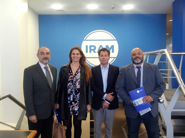 | IRAM es una Asociación civil sin fines de lucro, que representa mayormente PyMEs. Los ámbitos que abarca son: electrónica, siderurgia, transporte, combustión, agroindustria, alimentos, construcción, tecnología de la información, minería, energía, industria, entre otros. Alberto Schiuma Director General del Instituto Argentino de Normalización y Certificación recibió a la Gerente Operativa Industrial PyME, Alejandra Caffettaro y al Asistente, Martin Picón. | ![]() |