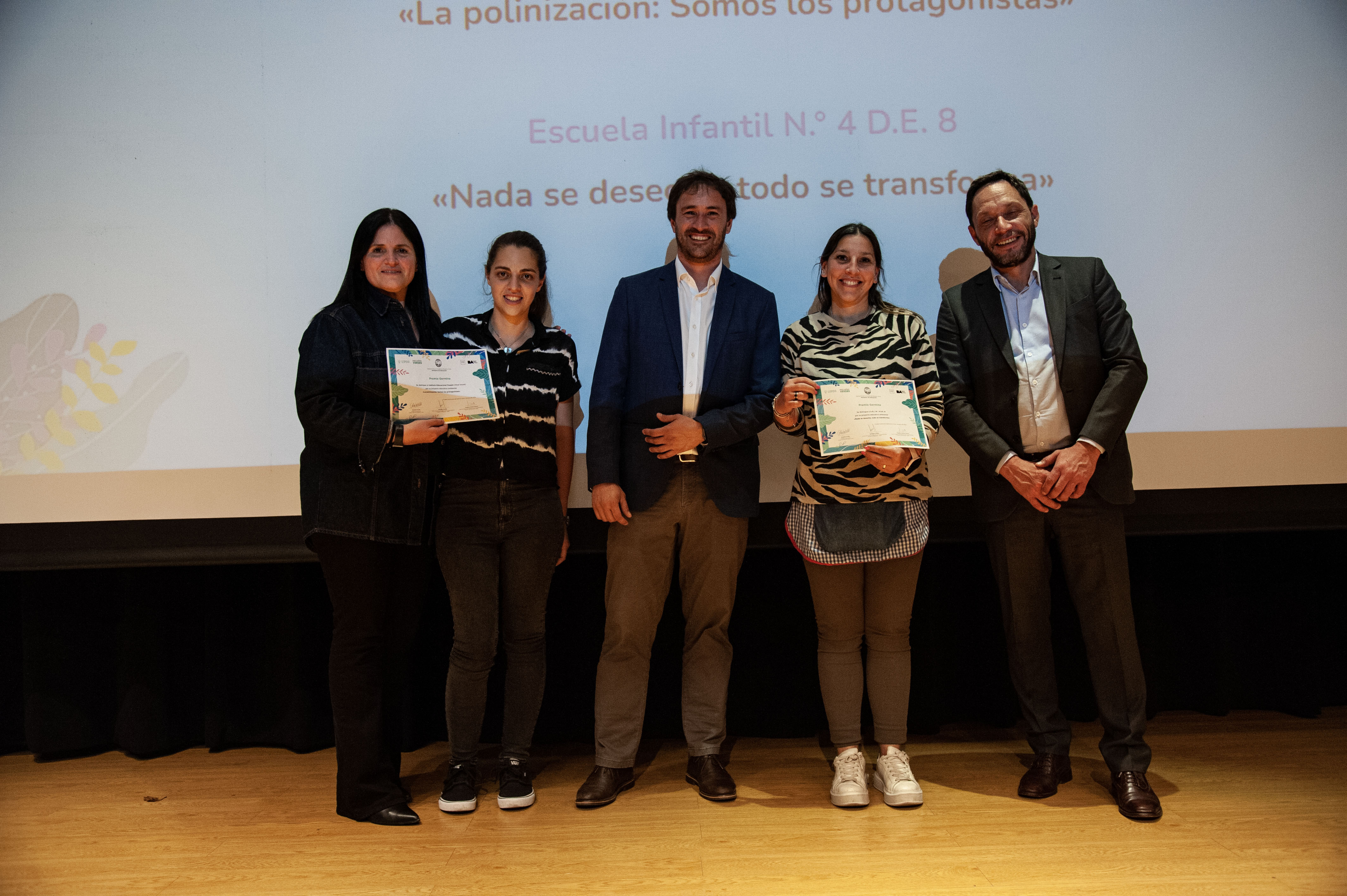 Jardín de Infantes Integral N.º 4 D.E. 14, proyecto: «Proyecto de huerta». El proyecto parte de su Proyecto Institucional y los espacios verdes que hay en el Jardín que resultan significativos para su comunidad. Promueven a través del proyecto estar en contacto con el ambiente natural, observar la diversidad biológica, establecer relaciones entre las plantas y su entorno. Destacan: que el contacto con la naturaleza propicia en ellos/as su capacidad de observar, de asombrarse, descubrir lo diferente y el valor de trabajar en equipo, escuchando, cooperando y respetando el trabajo del otro. Invitan a las familias a ser parte del comité ambiental, quienes colaboran en tareas conjuntas en la huerta.